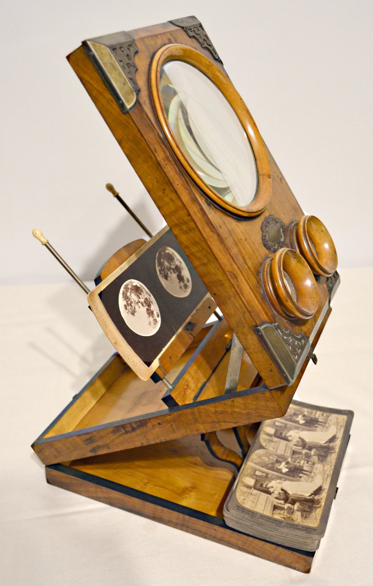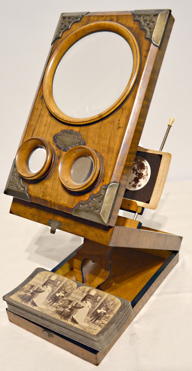 rotates and inter-ocular separation is swinging out the eyepieces.
