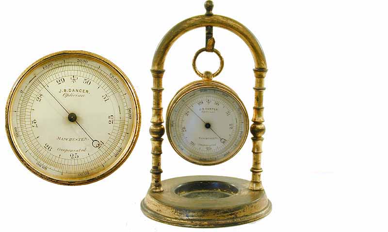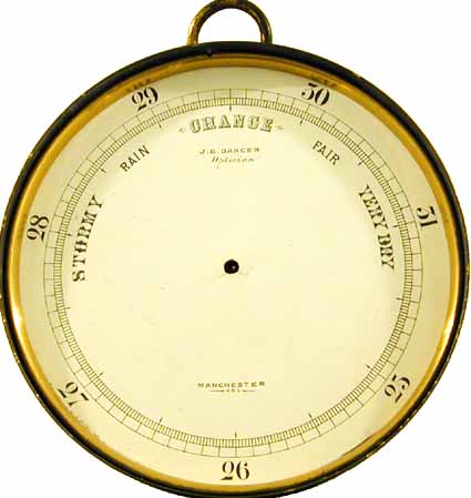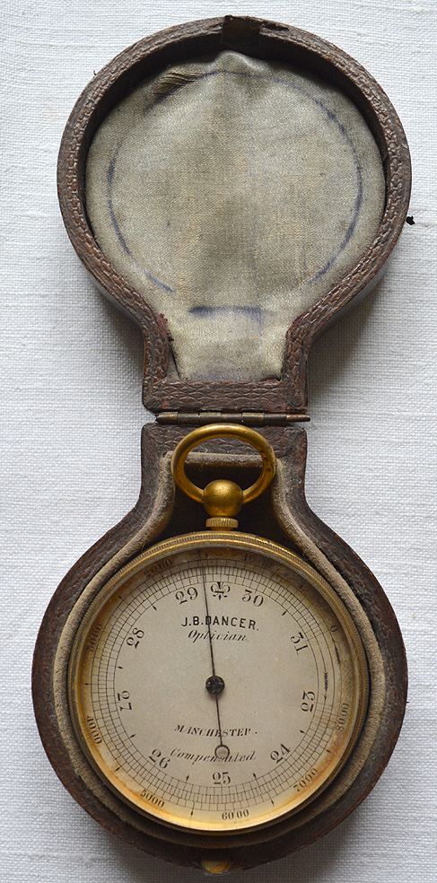 Coming from a line of barometer makers, it would seem inevitable that Dancer made all kinds of barometers. Many mercury tube based barometers are known and he even made the thermometers for Joules’ heat experiments. So far, I only have vacuum capsule barometers by Dancer –