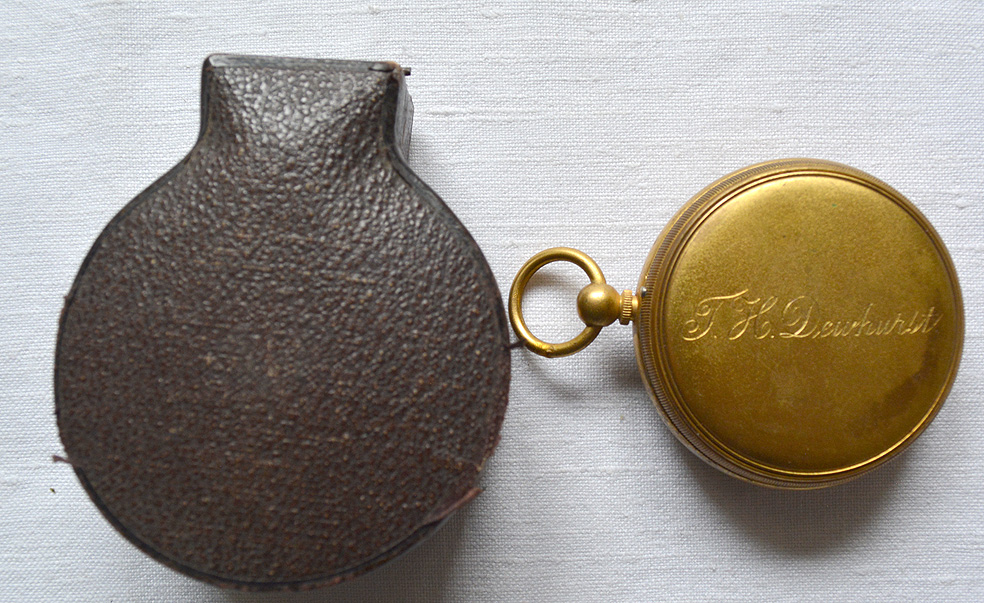 The instrument has a gilt brass case with access