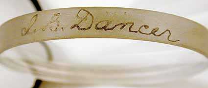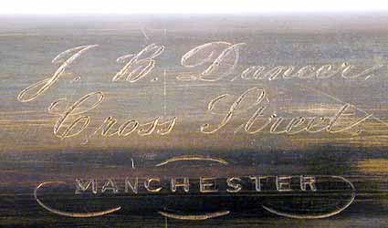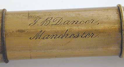 inset around each eyepiece is tooled in relief "J.B.DANCER, MANCHESTER". These gold plated low